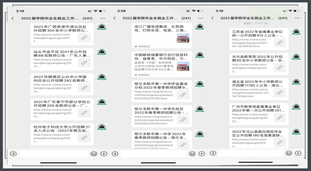 学院高度重视就业工作,坚持落实“一把手”工程,定期听取就业工作专项汇报,先后召开学院环节干部和全院教工就业工作专题推进会,保障2022届毕业生就业工作稳步推进。落实“全员就业”理念,成立由院领导、系主任、班主任组成的就业工作领导小组,形成“院--系--班”三级联动,建立“学院、辅导员、专业教师”全员参与的“大就业”工作格局。