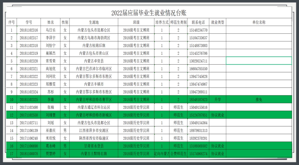 学院2022届毕业生人数234人,截至3月25日,已落实就业去向35人;通过硕士研究生国家线31人,保研7人;备考公务员、选调生考试41人;备考教师40人,投递简历等待面试40人;待就业80人。