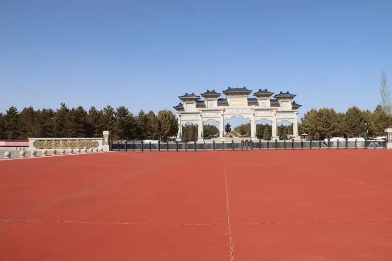2023年2月28日,2019级历史学专业见习学生从盛乐校区出发,经过几小时路程,到达见习第一站:成吉思汗陵。首先映入眼帘的是宏伟、壮观的“气壮山河”入口门景。成吉思汗的跃马柱型雕像矗立门前,他手持苏鲁锭长枪,骑着久经沙场的战马,下方的三块“基石”分别是《蒙古秘史》《蒙古黄金史》《蒙古源流》。穿过门景就是壮观的“铁马金帐”群雕,它以恢宏的气势生动地再现了成吉思汗率蒙古大军出征的情景。北边蓝天绿草之间,三座蒙古包式的大殿肃然伫立,明黄的墙壁、朱红的门窗、辉煌夺目的金黄琉璃宝顶,使这座帝陵显得格外庄严。由正殿、寝宫、东殿、西殿、东过厅和西过厅六部分组成。正殿中央是成吉思汗汉白玉雕像,背后是成吉思汗建立的帝国时期疆域图。后殿供奉着成吉思汗及三位皇后的灵柩,寝宫酥油灯长年不熄。西殿内供奉着成吉思汗八白室,由吉劳(鞍辔)白室、胡日萨德格(弓箭)白室和宝日温都尔(圣奶桶)白室等组成。东殿里安放着一座灵包,灵包内供奉着成吉思汗幼子拖雷和夫人额希哈屯的灵柩。