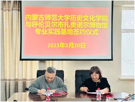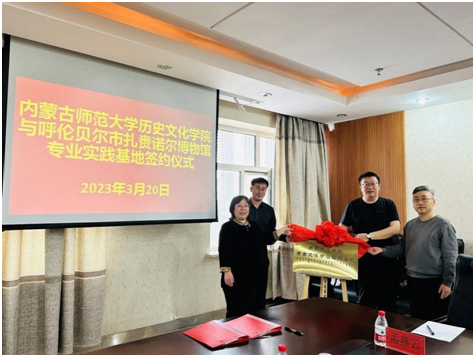 姜鑫局长首先代表扎赉诺尔文体旅游广电局对betway西汉姆联官网的各位领导与老师表示欢迎和感谢,其次介绍了扎赉诺尔区的历史与文化以及目前扎赉诺尔区文体旅游广电局在文旅产业与历史文化研究方面取得的进展与成效,最后阐述了今后扎赉诺尔文旅系统工作开展的想法与计划。扎赉诺尔博物馆馆长孙祖栋介绍了扎赉诺尔博物馆在专业领域、发展方向、基地建设等方面的工作情况。随后,双方就共建专业实践基地进行了签约、揭牌仪式。