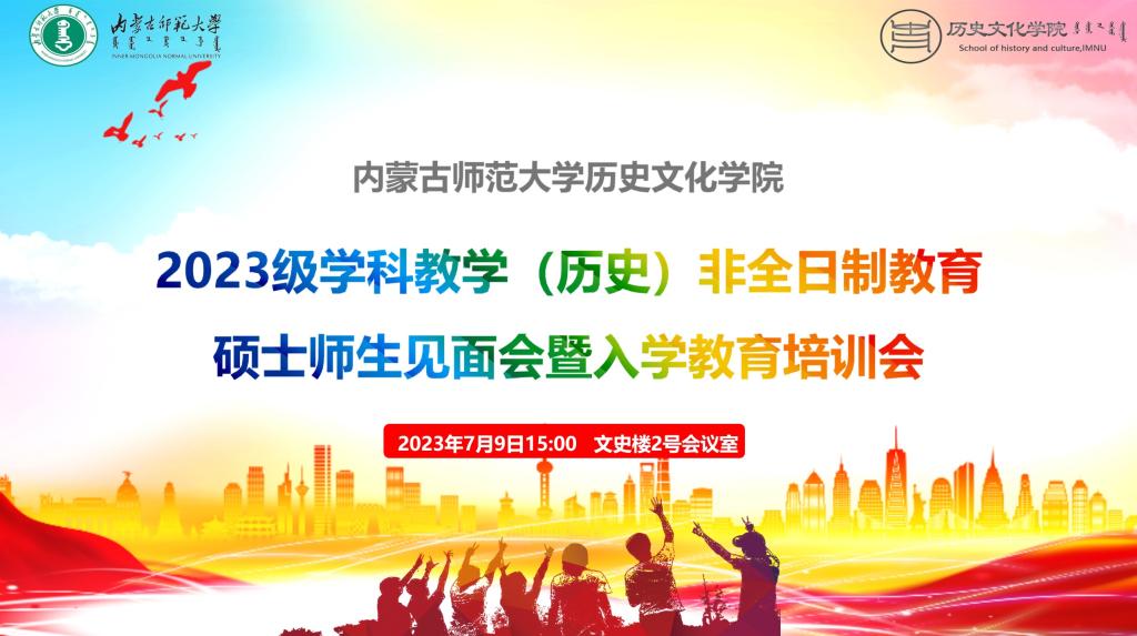 2023年7月9日,betway西汉姆联官网在赛罕校区文史楼2号会议室召开“2023级学科教学(历史)非全日制教育硕士师生见面会暨入学教育培训会”,学院党委书记李艳洁、副书记檀晶、副院长白林代表学院领导班子出席了会议,此外参加会议的还有非全日制研究生导师于永、乌兰其木格、王洁、于志勇、班主任孟燕云以及2023级学科教学(历史)非全日制研究生全体同学。