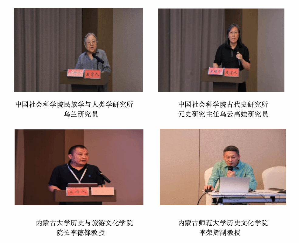 主旨报告环节由中国民族史学会副会长、内蒙古大学民族古典学高等研究院院长乌云毕力格教授和中国社会科学院民族学与人类学研究所彭丰文研究员主持,中国中外关系史学会副会长兼秘书长、中国社会科学院古代史研究所乌云高娃研究员和中国社会科学院民族学与人类学研究所乌兰研究员评议。内蒙古大学历史与文化旅游学院院长李德锋教授、内蒙古师范大学李荣辉副教授、中国社会科学院民族学与人类学研究所苏日朦助理研究员、中国社会科学院中国边疆研究所朱尖副研究员、内蒙古师范大学中华民族共同体学院袁刚副院长、唐山师范学院郑继强讲师作主旨发言。