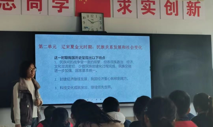 教学大纲和课程材料,教育部门针对历史课程的要求和目标,学科知识和教学技巧,这些都是她们需要学习的。积极参与教学计划的制定和实施,与指导老师设计教学内容和课程。通常在讲完课后,她们的指导老师也会及时的指出问题,力图进步。如何快速进入一名教师的状态?如何讲好一节课?这些问题在指导老师的帮助下,迎刃而解。在一个月的实习生活,教学理论变为实践,虚拟教学变为真正的面对面教学。尽管她们可能会出现种种问题,但经过她们不断的总结和探索,终能成为一名优秀的人民教师。