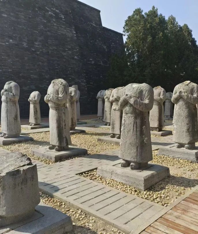 乾陵位于陕西咸阳,为唐高宗李治与武则天的合葬墓,是关中地区唐十八陵中主墓保存最完好的一个,也是唐陵中唯一一座没有被盗的陵墓。在老师的讲解下,同学们深入了解了乾陵的建造历史和文化底蕴。乾陵中的石刻文物体现了唐代雕刻艺术的高超,通过近距离观察陵墓的建筑结构和石刻艺术,大家对唐代皇室的生活、制度及文化氛围有了更加直观的感受。除此之外,地宫内的壁画、棺椁及各类陪葬品也让同学们对唐代的丧葬礼仪和陪葬文化有了更加深刻的理解。
