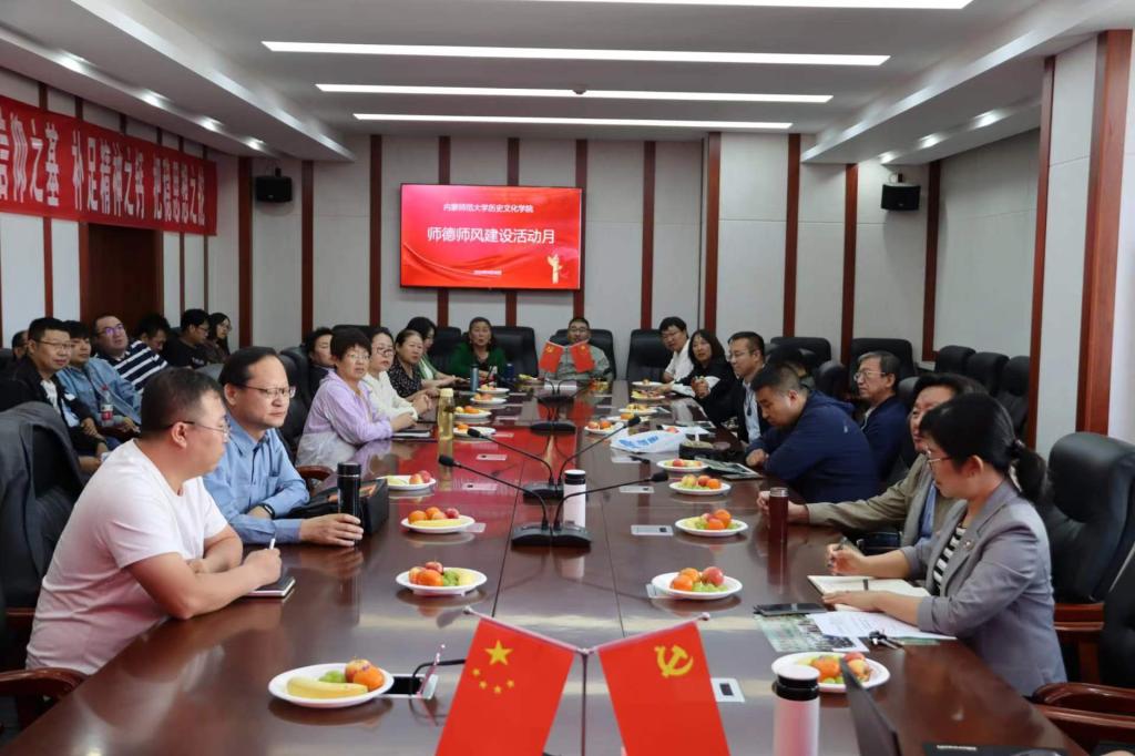 为了认真落实《内蒙古师范大学关于做好2023年度教职工师德师风涵养教育暨开展师德师风建设“8+N”专项行动的工作方案》,betway于2023年9月28日下午,在学院楼502会议室召开了betway西汉姆联官网师德师风建设活动月会议,参加会的有学院党委书记李艳洁,党委副书记、副院长檀晶,副院长白林及全体教职工。会议由李艳洁书记主持。
