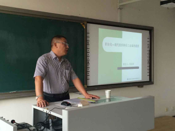5月26日上午, 内蒙古大学出版社侯富英副社长为2014级文化产业管理班同学做了关于“职业化”的专题讲座。 讲座以“职业化-现代组织和员工必备的素质”为题。讲解过程中,侯社长以沃尔玛和家乐福的两个小故事引出职业化概念,继而结合具体案例讲了职业化的作用,及如何提升职业化技能。本次讲座使同学们懂得了“小胜凭智,大胜靠德”的成功秘诀。希望每位学生都能在不久的将来快速适应自己的职业角色。