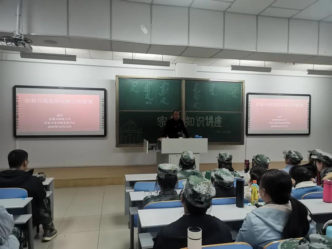 2020年10月12日晚,betway在行知教学楼105教室举行了《宗教知识》专题讲座,由学院党委书记张升老师主讲,2020级全体同学细致聆听讲座。