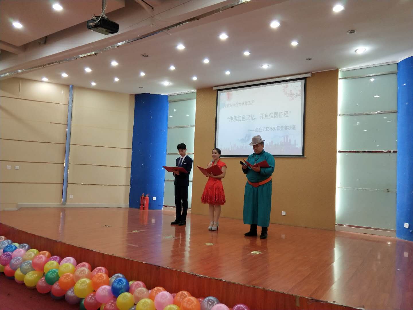 2018年5月25日下午15时,内蒙古师范大学第五届“传承红色记忆,开启强国征程”——“红色记忆杯”知识竞赛决赛在内蒙古师范大学盛乐校区科技楼一楼报告厅成功举办。betway西汉姆联官网团总支副书记钱艳艳出席本次比赛,学院老师李岭、李艳洁、王洁作为仲裁团成员出席比赛。