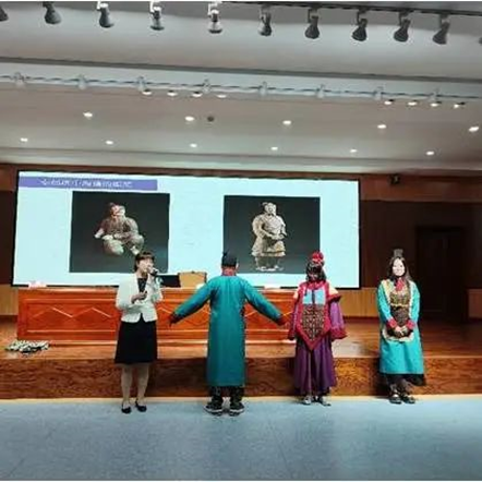 2023年9月7日,秦陵博物院同betway西汉姆联官网开展的“优秀历史文化进校园走进内蒙”暨铸牢中华民族共同体意识教育主题讲座在盛乐校区图书馆一楼报告厅进行。讲座由秦陵博物院冯莉老师与赵红芳老师主讲,学院郭永胜教授主持,2023级全体新生参加。