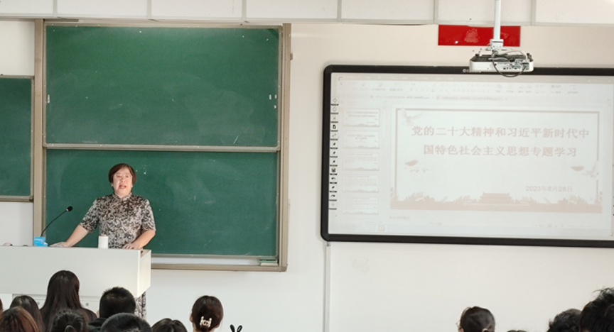 李艳洁老师首先讲述了“习近平新时代中国特色社会主义思想和党的二十大精神专题学习”的内容,以习近平总书记的重要讲话精神为引领勉励2023级新生:“青年强,则国家强,当代中国青年生逢其时,施展才干的舞台无比广阔,实现梦想的前景无比光明”。