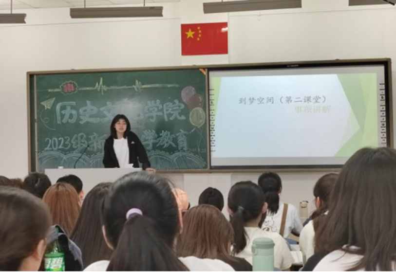 随后由第二课堂的同学为新生们介绍到梦空间系统的相关情况,对思想成长、实践锻炼与志愿服务、文体活动、社会工作、技能特长、创新创业六个板块进行了详细的讲解,之后邀请各班同学进行到梦空间系统操作体验。通过对到梦空间的系统介绍使同学们对大学生活有了更加深入的了解和憧憬。