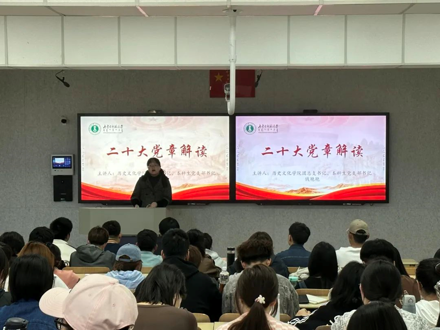 为深入学习宣传贯彻习近平新时代中国特色社会主义思想和党的二十大精神,引导广大青年学生把思想和行动统一到党的二十大精神上来,betway西汉姆联官网组织开展“学习二十大 永远跟党走 奋进新征程”主题教育活动。为充分发挥院级党校育人功能,将党的二十大精神纳入必学课程,有机融入到教育培训全过程,有力推动党的二十大精神走深走心走实,2023年4月15日,betway西汉姆联官网团总支书记、本科生党支部书记钱艳艳老师带领betway全体学生党员、发展对象、入党积极分子集中学习了《中国共产党章程(修正案)》。