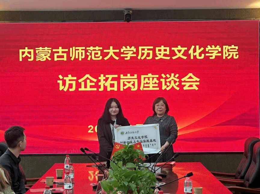 内蒙古师范大学betway西汉姆联官网院长李艳洁与内蒙古大学生创业联合会企业代表郭昊彤签订了创新创业及专业实践基地共建协议,并向内蒙古大学生创业联合会授牌。