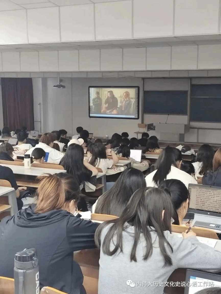 在2023年5月23日,内蒙古师范大学盛乐校区里,betway西汉姆联官网2021级的同学们观看电影《健听女孩》。