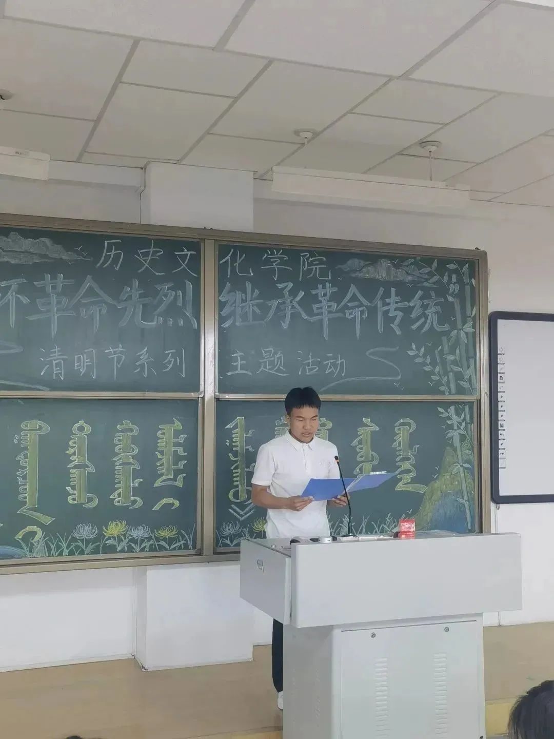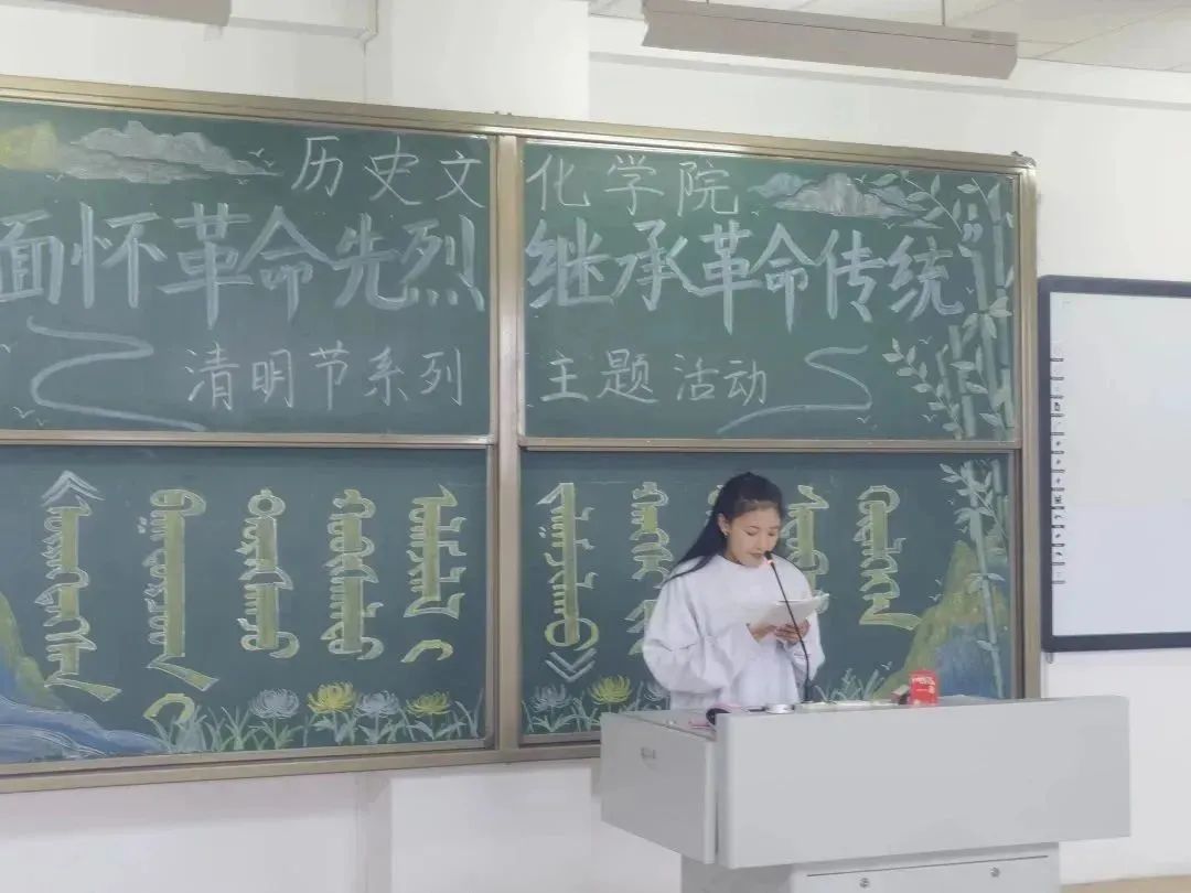 此次活动以“纪念革命先烈,清明文明祭扫”为主题,内容多样,形式丰富,追忆先贤,怀古颂今,朗诵了《沁园春·长沙》、《可爱的中国》节选等经典,活动中洋溢着浓郁的诗意氛围和对先辈们的深深思念。