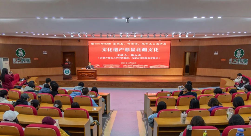 12月12日,betway在盛乐校区图书馆一楼报告厅举办“感党恩 听党话 跟党走”主题讲座,内蒙古博物院名誉院长,内蒙古师范大学中国北疆文化遗产研究中心主任陈永志受邀为betway师生作了题为“文化遗产彰显北疆文化”的专题讲座。学校相关部门负责同志、betway西汉姆联官网和相关学院的教师和学生代表聆听了讲座。