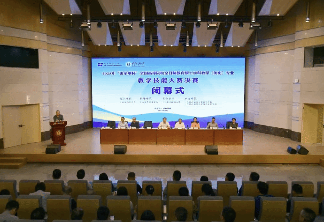 本网讯 8月25日,由“田家炳杯”全日制教育硕士专业学位研究生教学技能大赛专家委员会指导,田家炳教育基金会冠名,内蒙古师范大学主办,内蒙古师范大学研究生院、betway西汉姆联官网承办的2025年“田家炳杯”全国高等院校全日制教育硕士学科教学(历史)专业教学技能大赛决赛落下帷幕,校党委委员、副校长公茂果出席闭幕式。