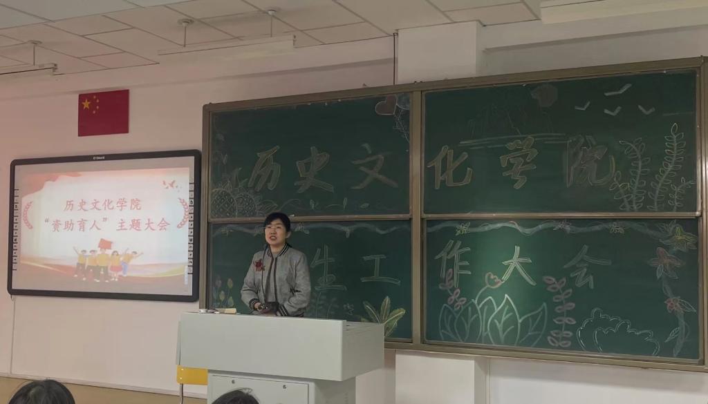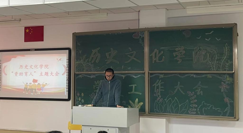 会议首先,潘梅花老师介绍了召开本次会议的目的,是为了让学生正确认识国家奖助学金的意义,更好理解国家资助政策,引导学生常怀感恩之心,立志砥砺前行。随后,受助学生代表:国家励志奖学金获得者2021级历史学二班冯慧同学和国家助学金获得者2021历史学三班鲍亮同学先后上台发言,汇报了自己本学年的表现,表达了对国家资助政策的感恩以及继续努力学习,用实际行动回报学校和社会的决心。
